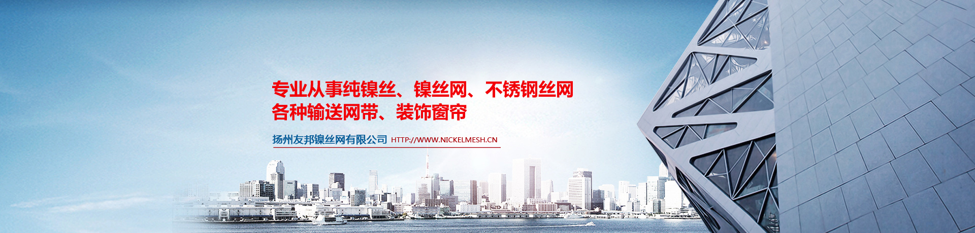 扬州友邦镍丝网有限公司地处长江三角洲经济区及风景秀丽的扬州古城东郊冶江开发区,328国道宁通高速、京沪高速交汇处,交通十分便利。是专业从事纯镍丝、镍丝网、不锈钢丝网各种输送网带、装饰窗帘的生产厂家。